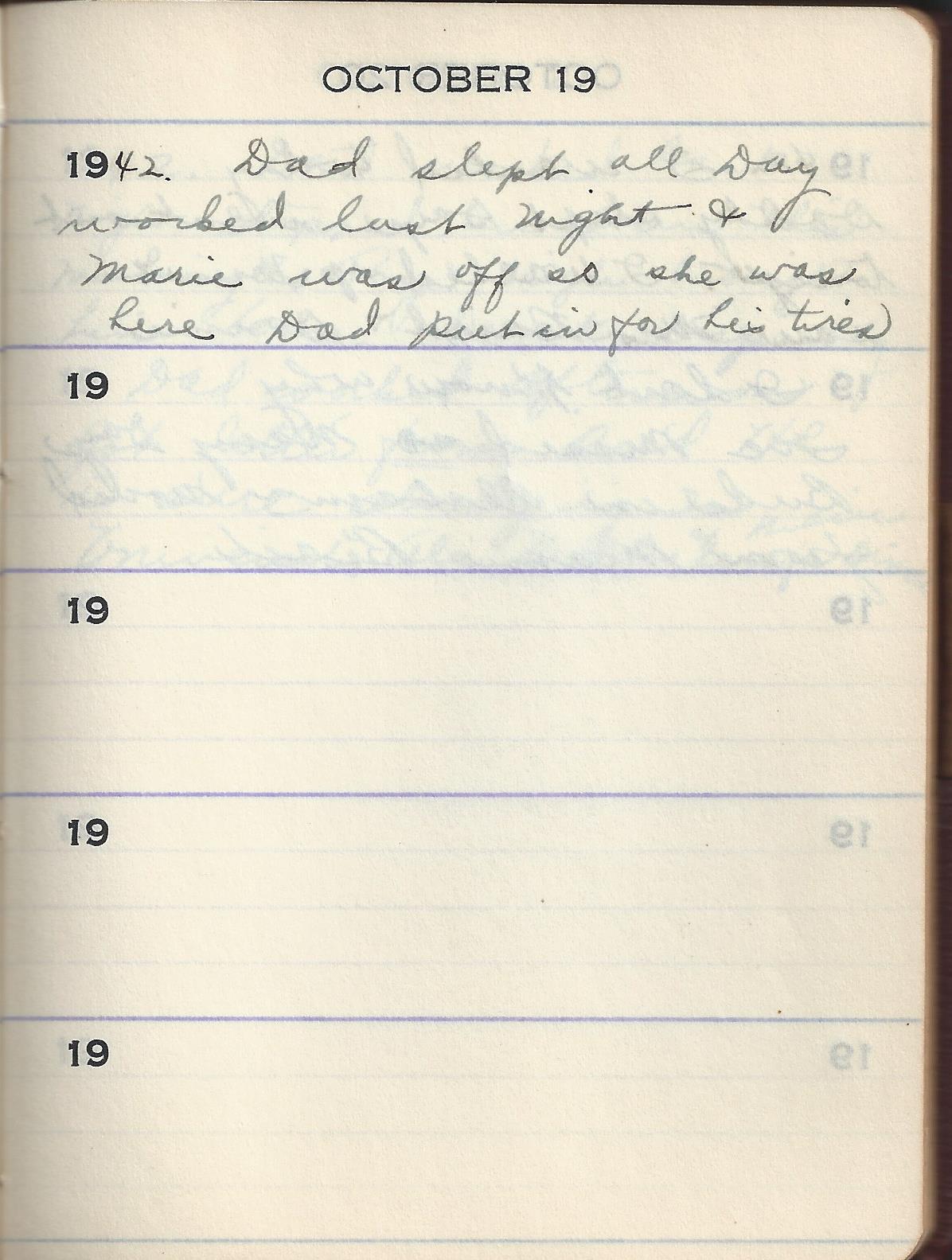 1942 Dad slept all Day worked last Night & Marie was off so she was here Dad put in for his tires