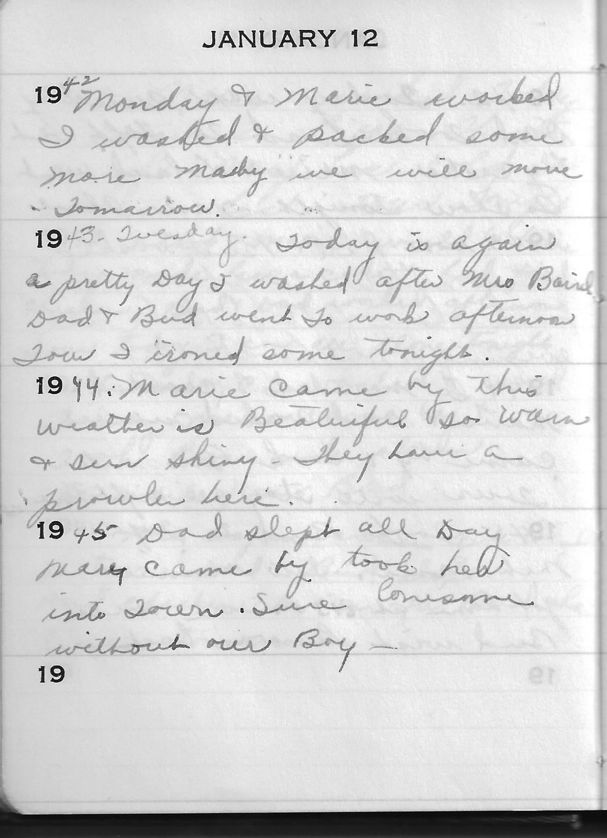 2 Responses to 12 Jan – Martha Marie Wright Tennant – Five Year Diary