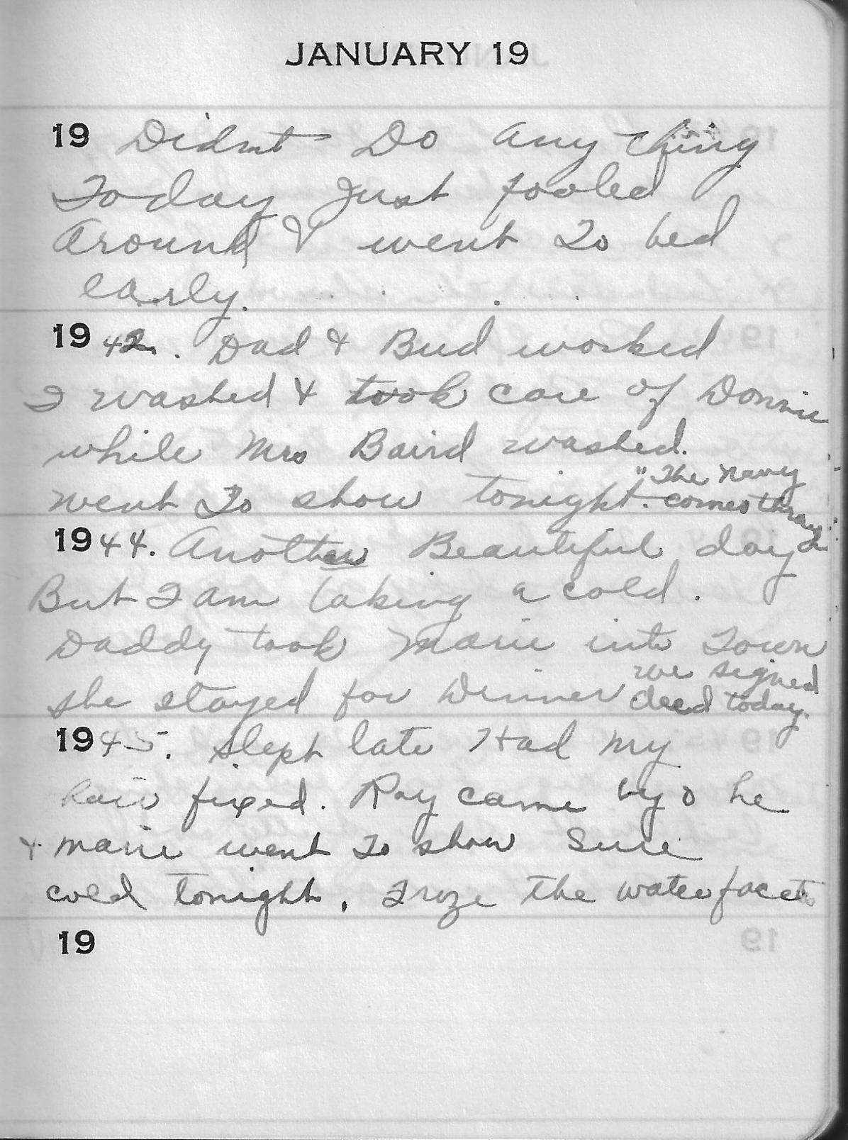 19 Jan – Martha Marie Wright Tennant – Five Year Diary