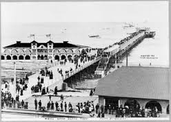 1943 entry: The Pike was an amusement zone in Long Beach, California. The Pike was founded in 1902 along the shoreline south of Ocean Boulevard with several independent arcades, food stands, gift shops, a variety of rides and a grand bath house. It was most noted for the Cyclone Racer (1930–1968), a large wooden dual-track roller coaster, built out on pilings over the water.