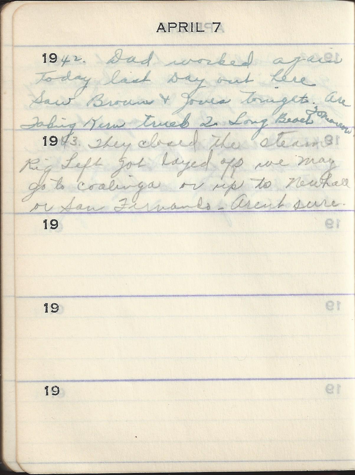 1942 Dad went out To get his check & worked today got letter from Marie & she hasn’t found her bag yet.
