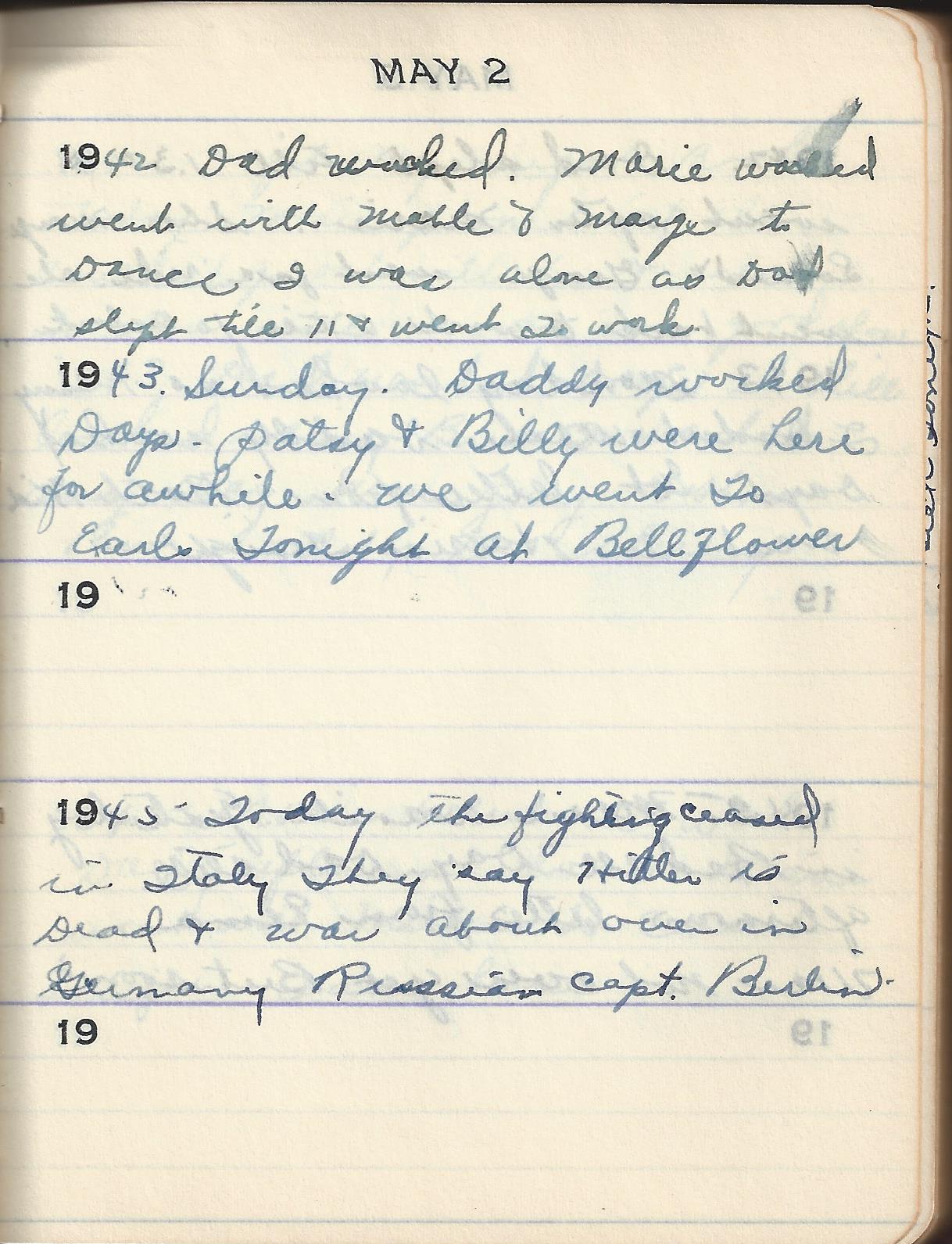 1945 Today the fighting ceased in Italy They say Hitler is Dead & war about over in Germany. Russian capt. Berlin.