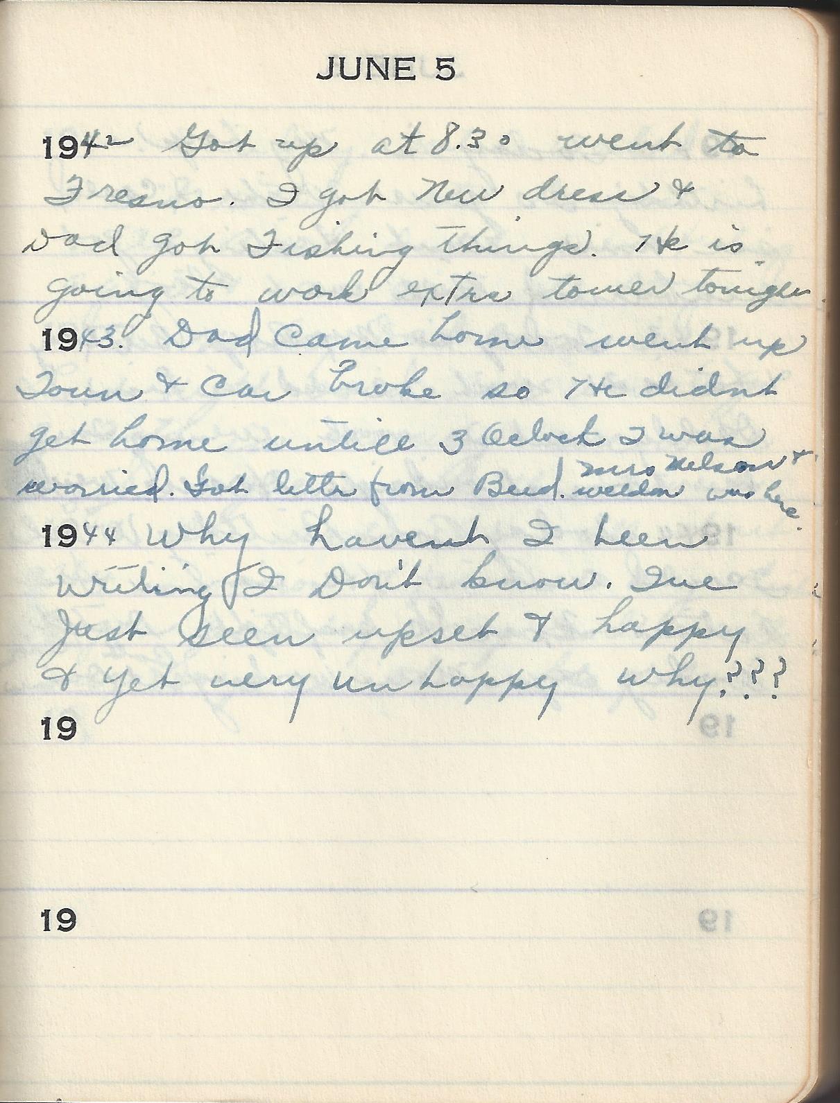 1944 Why haven’t I been writing I Don’t know. Ive Just been upset & happy & yet very unhappy why???