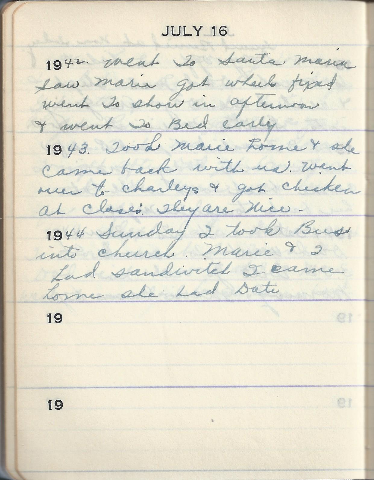 1942 Went To Santa Maria Saw Marie Got wheels fixed Went To show in afternoon & went To Bed early
