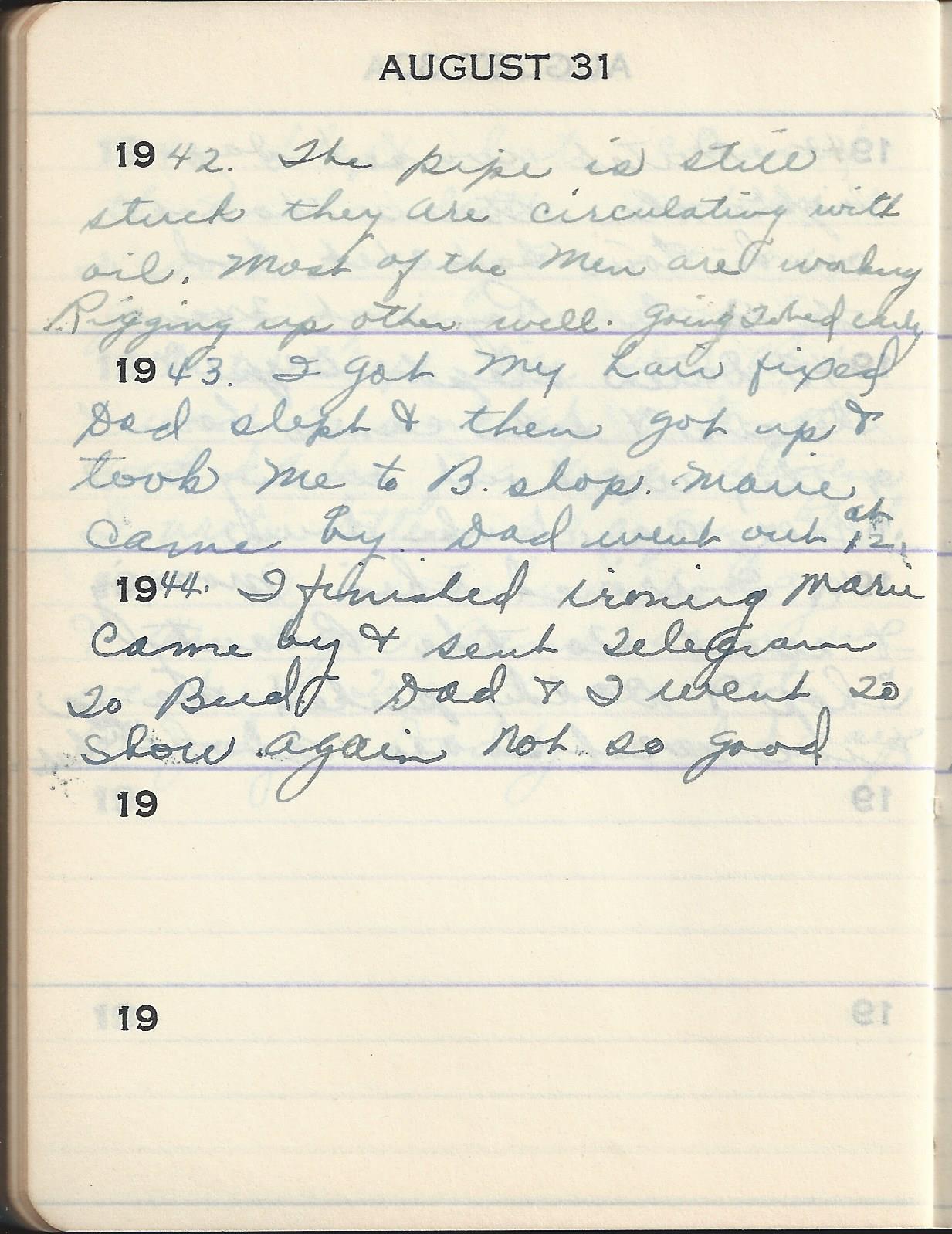 1944 I finished ironing Marie came by & sent Telegram To Bud Dad & I went To show again Not so good