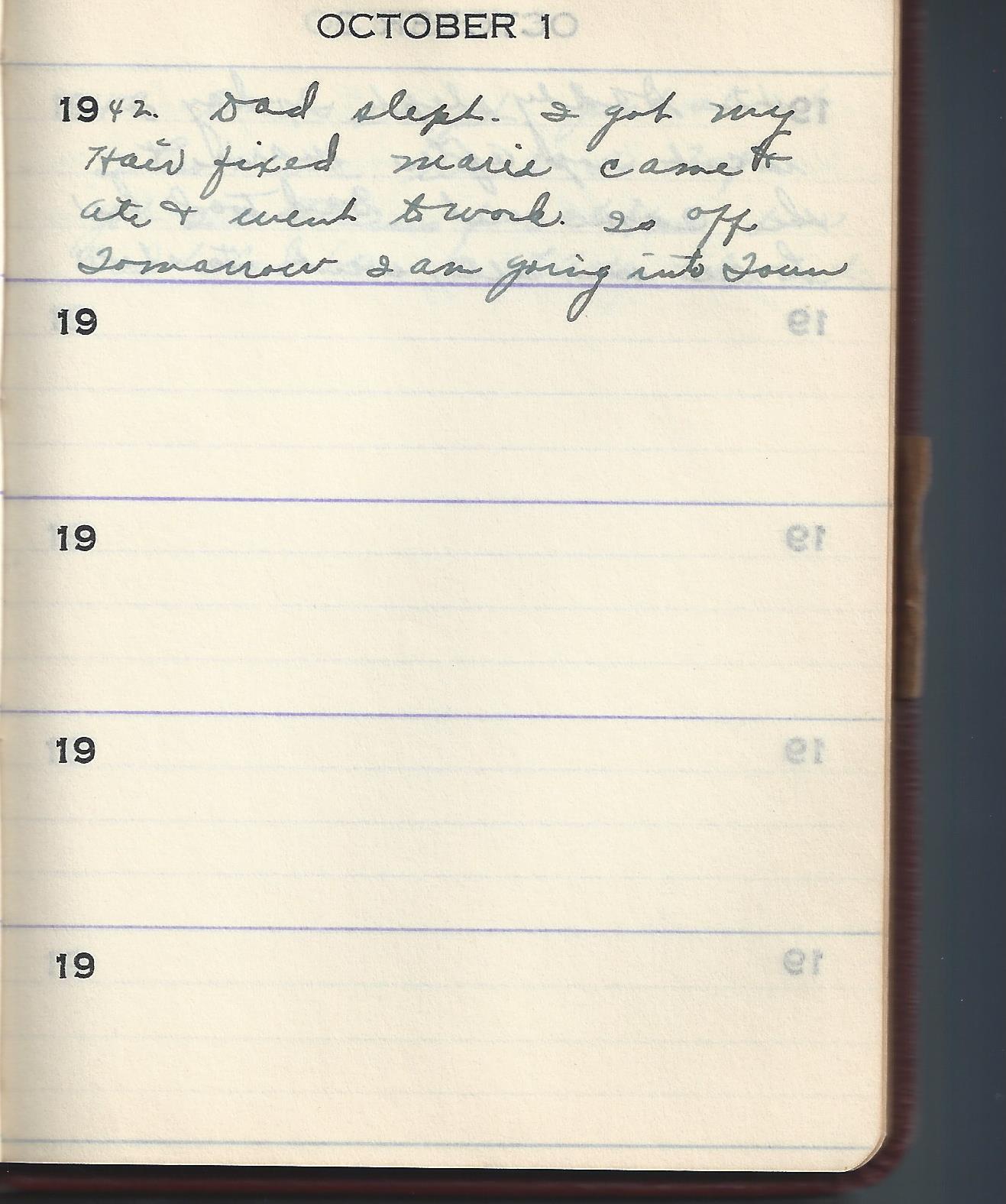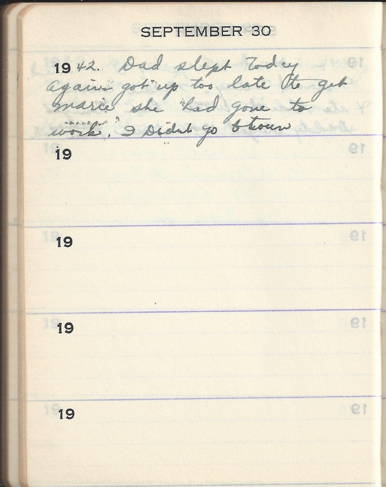 1942 Dad slept today again got up too late to get Marie she had gone to work. I Didn’t go to town